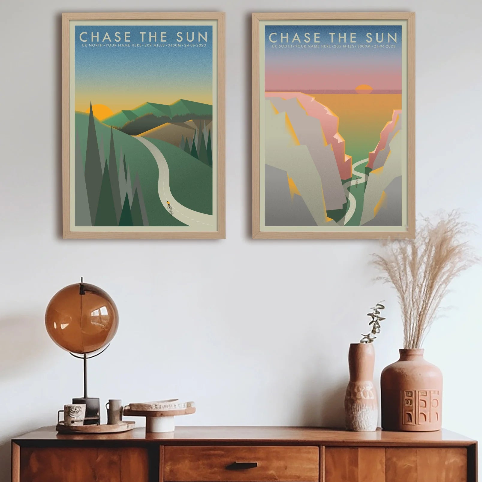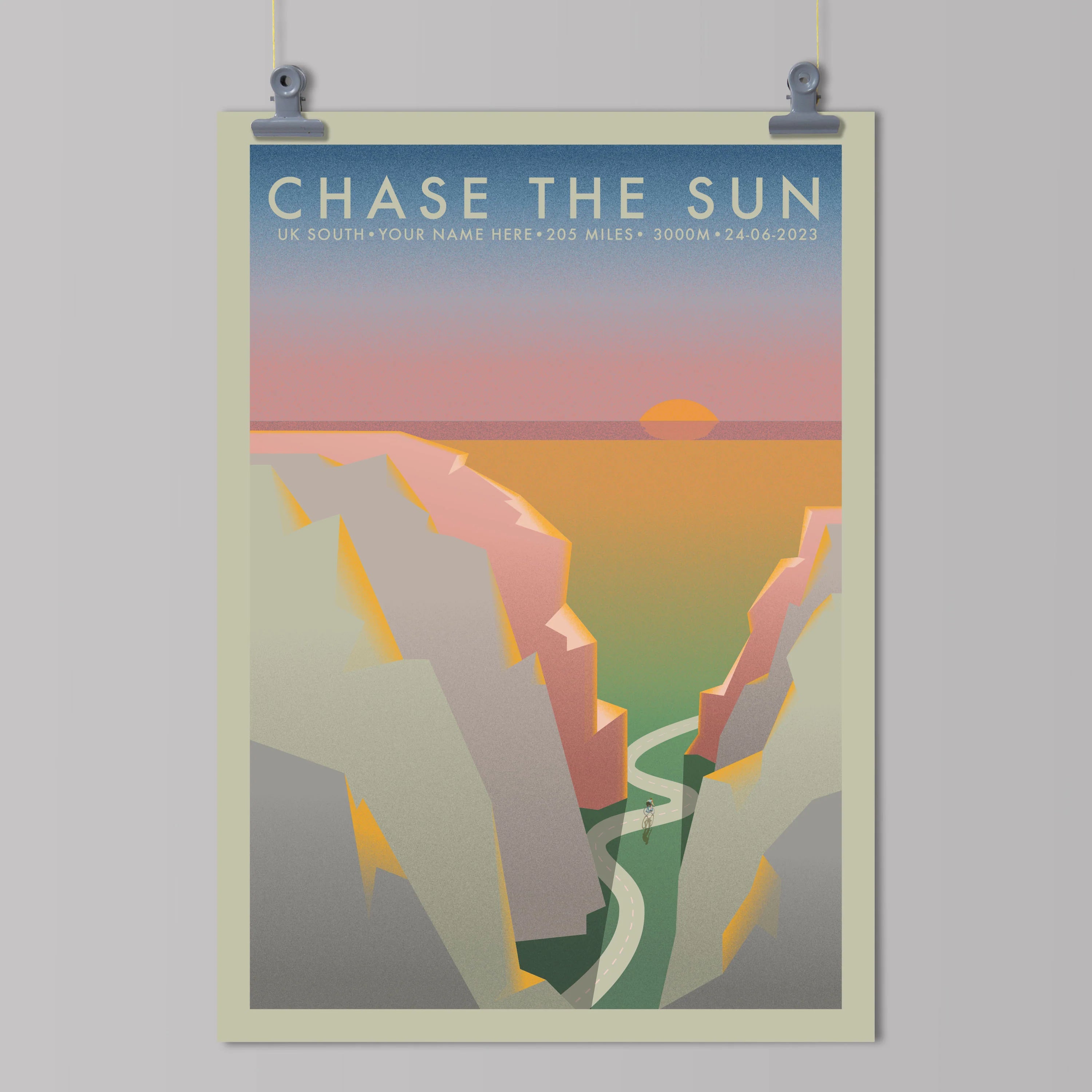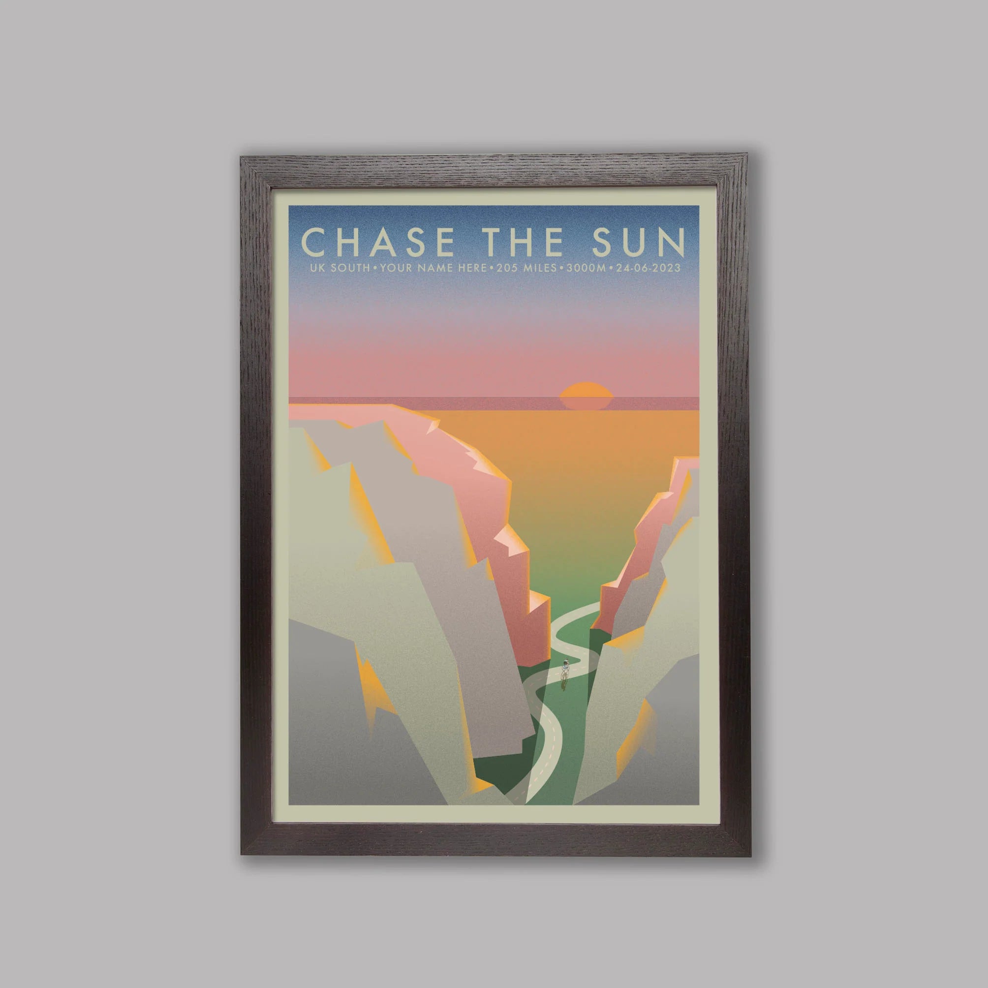 Chase The Sun South [Personalized] | The Adventure Collection | Cycling Art Print