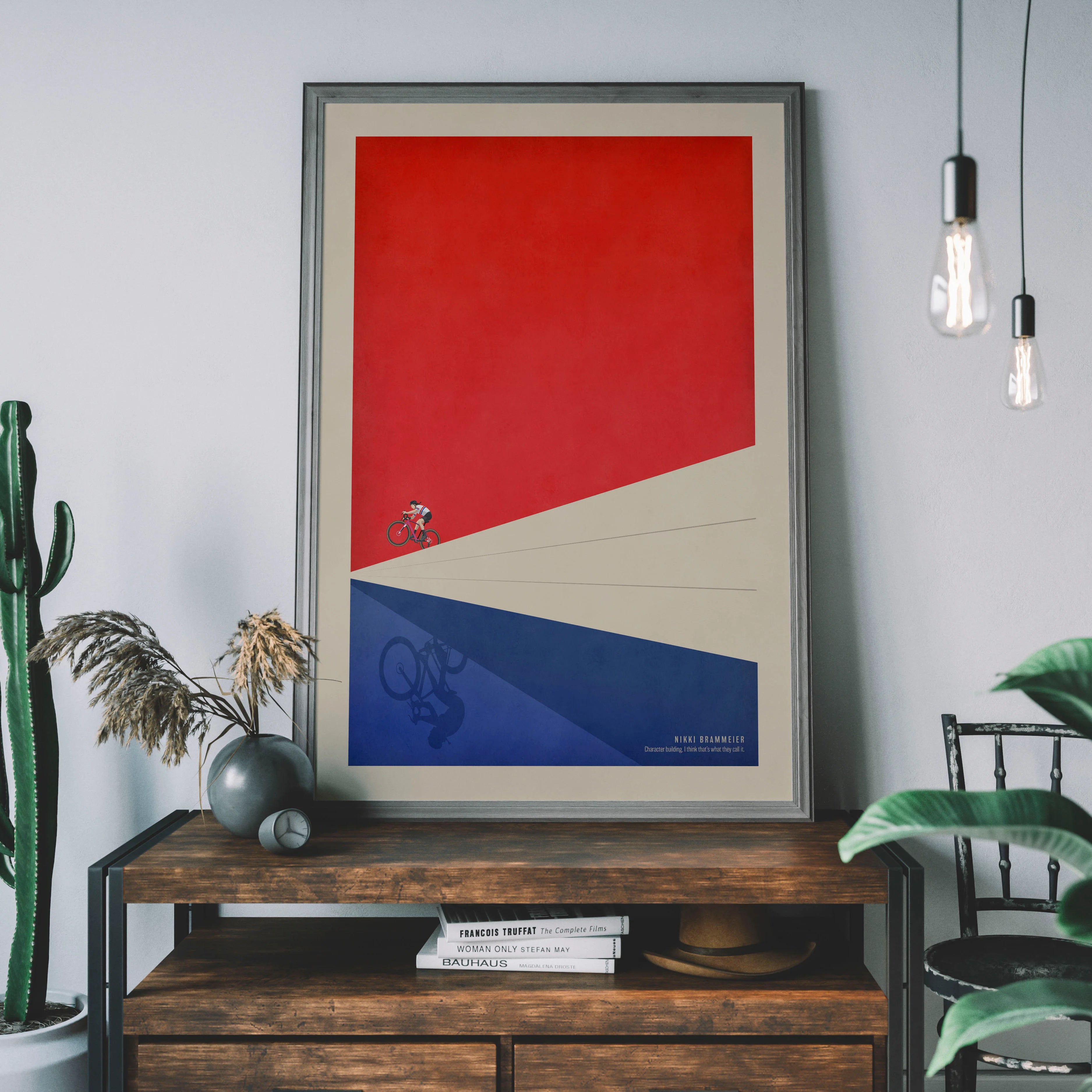 The first in our series dedicated to incredible female cyclists, this print started life as a bespoke commission for British cyclocross legend Nikki Brammeier (née Harris), who asked us to create an artwork to give as a gift to people close to her to thank them for their support during her outstanding career.